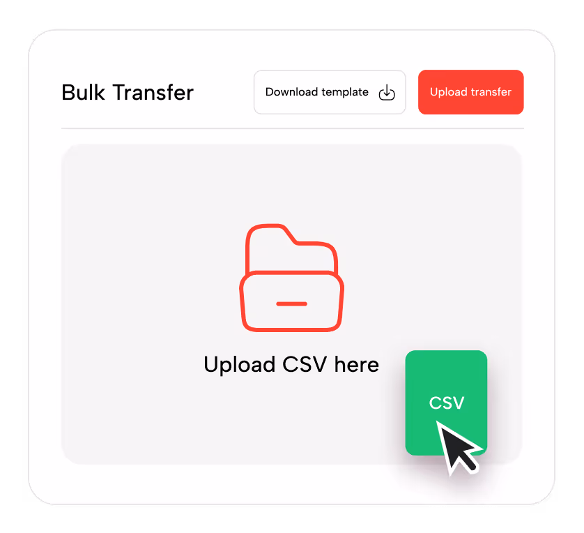 Skip manual data entry and use our simple templates to securely upload beneficiary details in bulk. Save working hours and reducing the risk of errors.