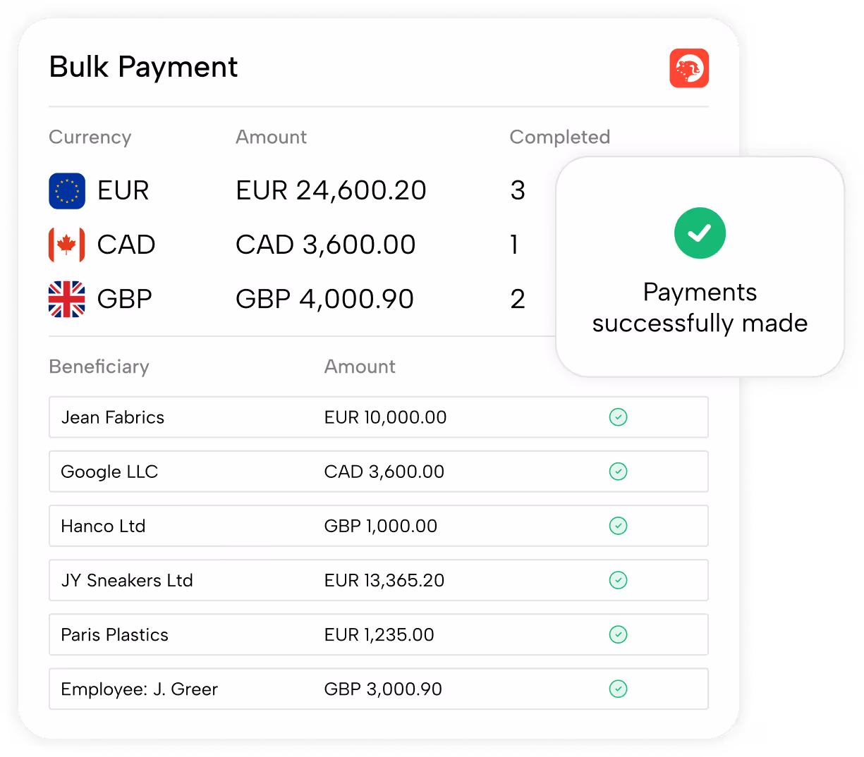 Batch Payments simplifies and speeds up your payment operations. You can pay up to 5,000 recipients in multiple currencies and automate the entire workflow, from approvals to reconciliation. It reduces manual processes, improves visibility, and helps your finance team move faster.