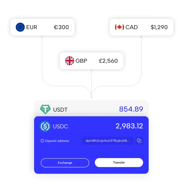 Benefit from the speed of stablecoins, the utility of multi-currency accounts and the simplicity of an automated financial system, all in one platform.