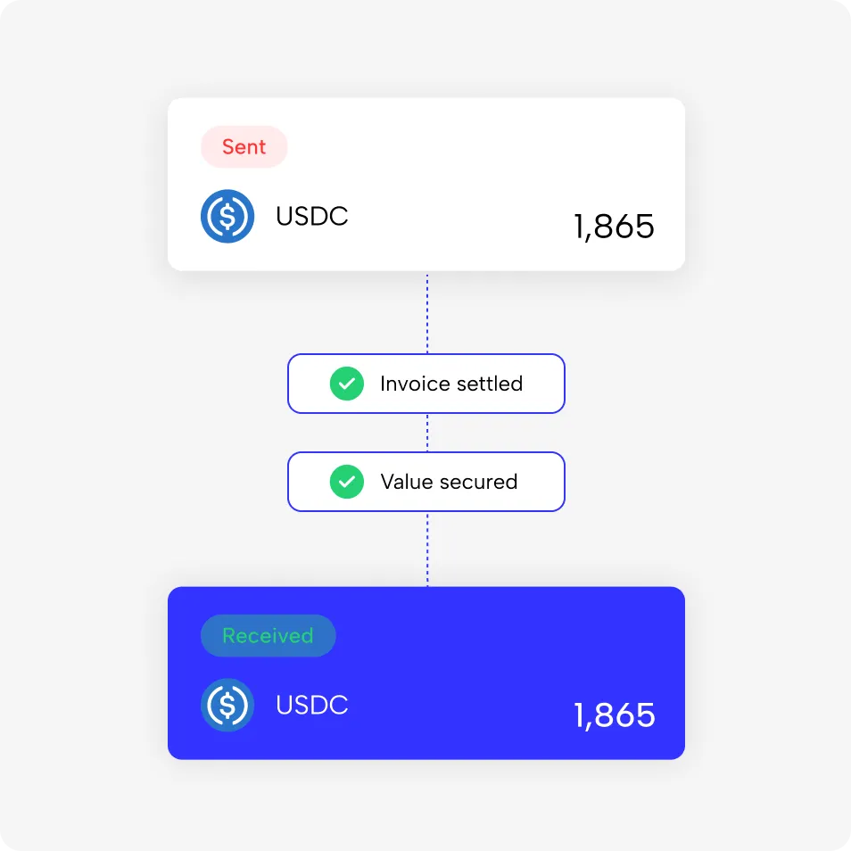 De-risk your trades across global regions. Make payments with USD-pegged digital assets to ensure your stakeholders get full value every time.