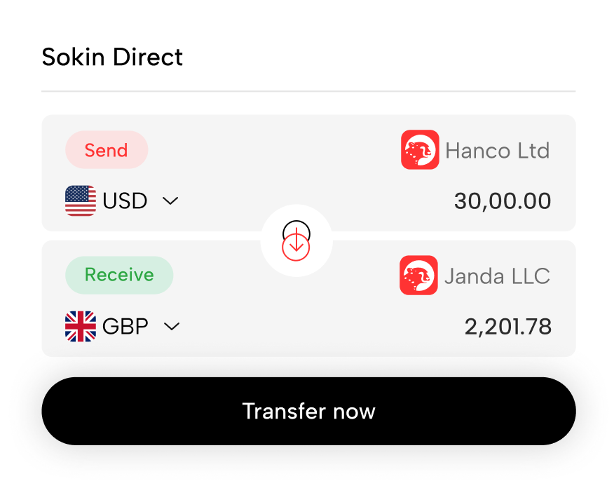 Sokin helps you manage high-value, time-sensitive, and cross-border business wire transfers without the operational drag of traditional banks. Whether you: